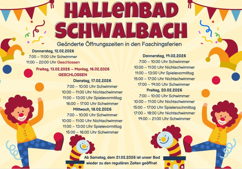 Zu folgenden Öffnungszeiten kann das Hallenbad genutzt werden:
