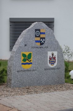 Die Vierteilung des Wappens von Elm weist auf den Zusammenschluss der Orte Derlen, Knausholz, Elm und Sprengen im Jahre 1938 hin.