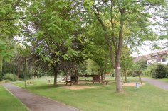 Die Wanderung führt vorbei am Hallen-Freibad Schwalbach und leicht bergauf zum Kriegerehrenmal auf dem Hohberg mit herrlichem Ausblick.